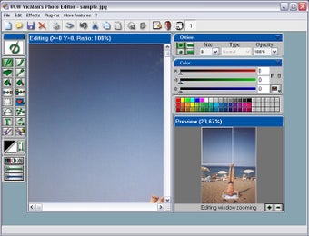 Unter der Benutzeroberfläche bietet VicMan's Photo Editor Zugriff auf alle üblichen Werkzeuge wie Pinsel, Paintbrush, Radierer, Füllfarben, Auswahlwerkzeuge und Textwerkzeug. Von Helligkeit über Kontrast und Farbsättigung bis hin zu fast 100 speziellen Effekten hält der Bildbearbeiter darüber hinaus eine gut gefüllte Palette an Filtern bereit. So hat die Software unter anderem Warp und Kunstfilter in petto. Das Programm unterstützt mehr als 30 Dateiformate und Photoshop-Plugins. Eine Vorschaufunktion für Dateiexport und die integrierte Scanneranbindung runden VicMan ab.